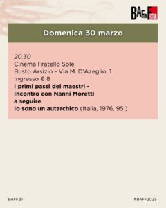 Domenica 30 marzo al Teatro Fratello Sole, il BAFF ospita Nanni Moretti, autore di capolavori come La stanza del figlio (Palma d’Oro a Cannes), La messa è finita (Orso d’Oro a Berlino) e Caro diario. Il regista ci accompagnerà alla riscoperta del suo primo lungometraggio, Io sono un autarchico (1976), il film che ha segnato la nascita del suo alter ego Michele Apicella e dato il via a uno stile inconfondibile. Girato in Super8 con amici, familiari e intellettuali, il film è un ritratto ironico e tagliente della cultura post-sessantottina. Un’opera che ha segnato un’epoca e che Moretti introdurrà in un incontro speciale con il pubblico del BAFF.
